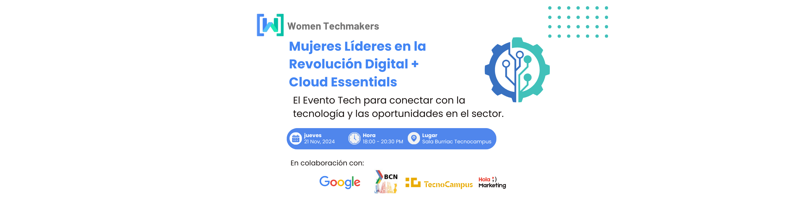 El próximo jueves 21 de noviembre, en Tecnocampus Mataró, tendrá lugar el evento organizado por Women Techmakers BCN, donde dos grandes líderes nos hablarán sobre temas clave en la era digita