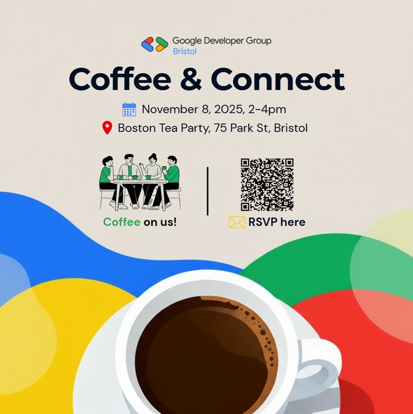 Come join us for Google Developers Group Bristol: Coffee & Connect — the very first meetup for the GDG Bristol community!