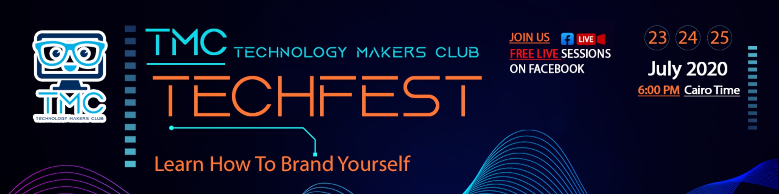 Do you want to start a career in the field of technology? ๐ค TechFest is exactly for you! ๐ฅ TechFest is organized by Technology Makers Club (TMC), a startup project sponsored by Engineers Syndicate. Join us on the 23rd, 24th, and 25th of July on Facebook to attend our live sessions presented by experts in the field of technology. ๐ #GDGCairo #TMC #Amazon #Booking #Github #TMC_TechFest_2020