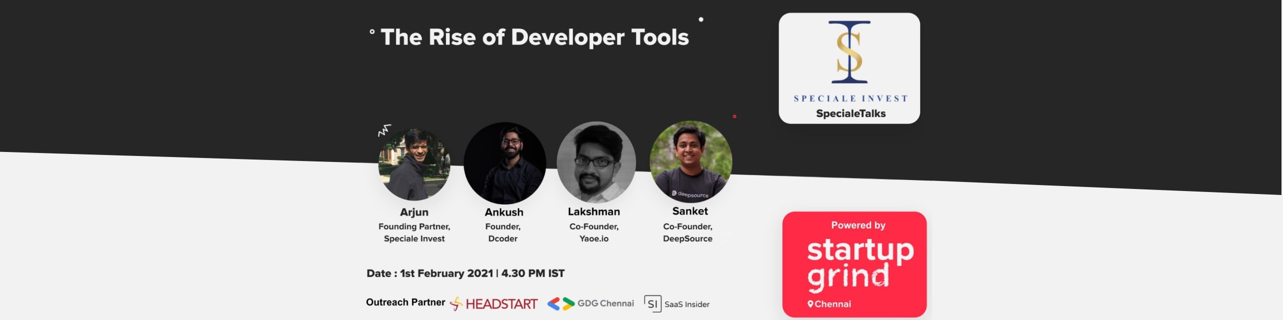 We are excited to partner with StartupGrind Chennai for SpecialeTalks Initiative. Join our second edition of SpecialeTalks where we discuss the rise of developer tools.