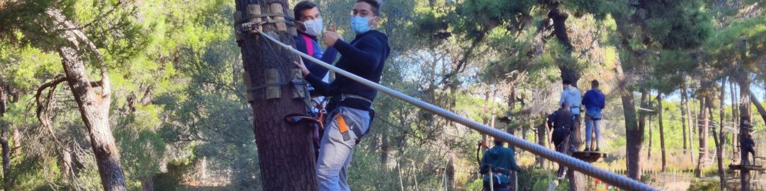 Comenzaremos el día a las 10 horas con una actividad de aventura en el parque Aventura Amazonia, donde compartiremos retos de equilibrio, coordinación y fuerza de manera divertida.