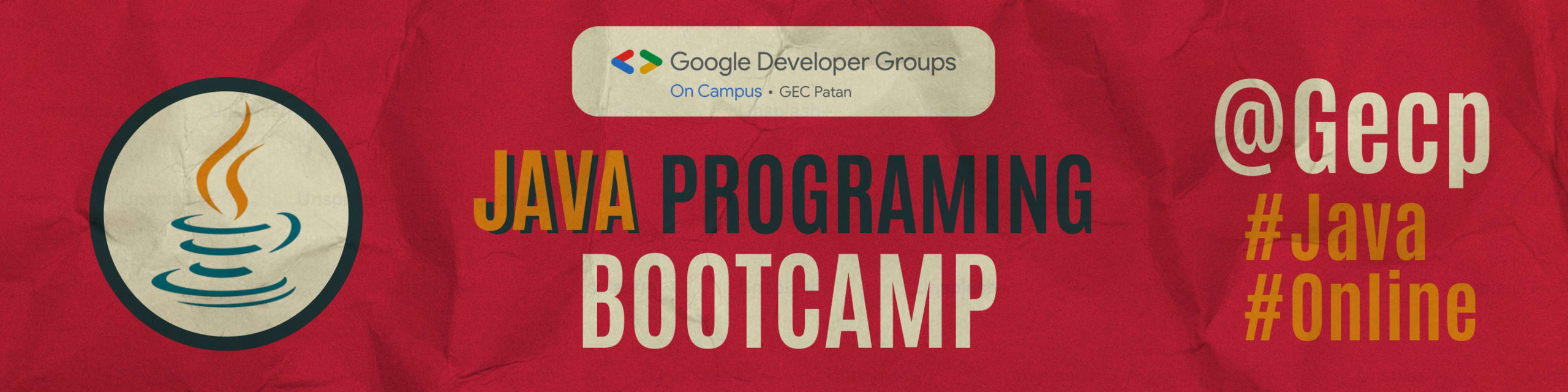 Join us for an intensive 2-day online Java Bootcamp conducted on Bevy, scheduled from 4-6pm, where you will be introduced to the world of Java.