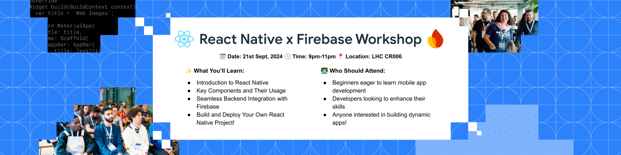 Whether you're a beginner or have some experience with React Native, this workshop is designed to help you sharpen your skills and develop a project-ready understanding of mobile development.