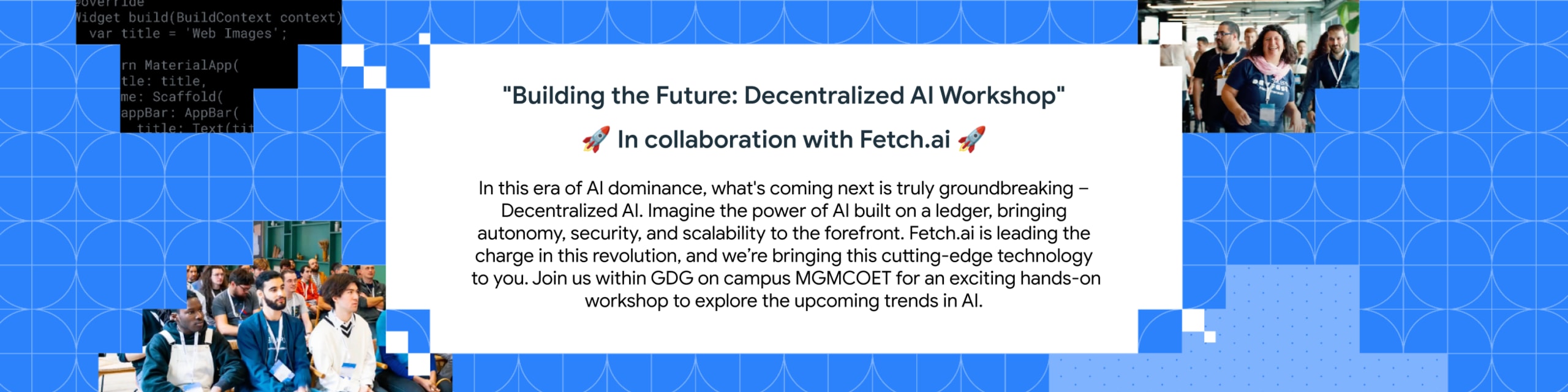 Join us for a hands-on workshop in collaboration with fetch.ai, where you'll learn to build decentralized AI using cutting-edge fetch.ai tech. Gain practical skills and explore the future of AI!