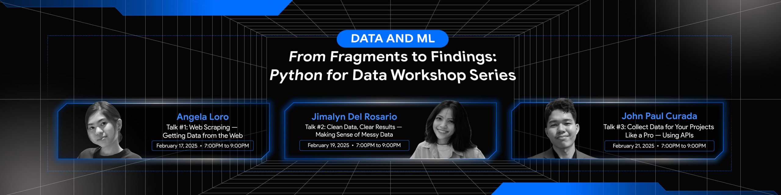 Want to level up your data game? Join us for From Fragments to Findings: Python for Data Workshop Series — three power-packed sessions that'll teach you how to find, clean, and use data for your projects. Perfect for beginners who want to learn practical Python skills.