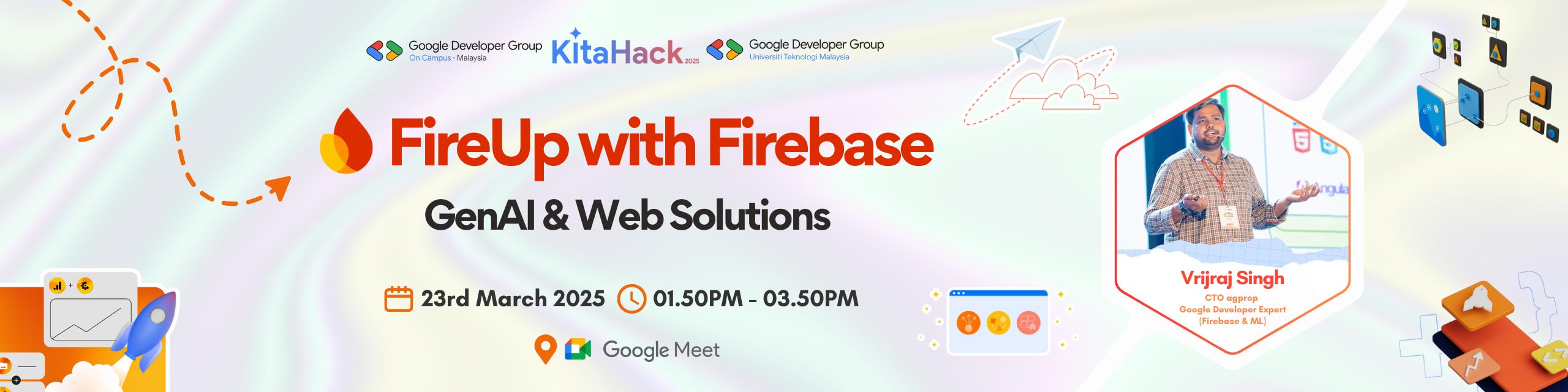 ๐ฅ Get ready to explore the power of Firebase and Generative AI in an exciting hands-on workshop with Google Developer Expert Vrijraj Singh! Whether you're a web developer or an AI enthusiast, this session will equip you with practical skills to build smarter applications. In collaboration with KitaHack 2025!