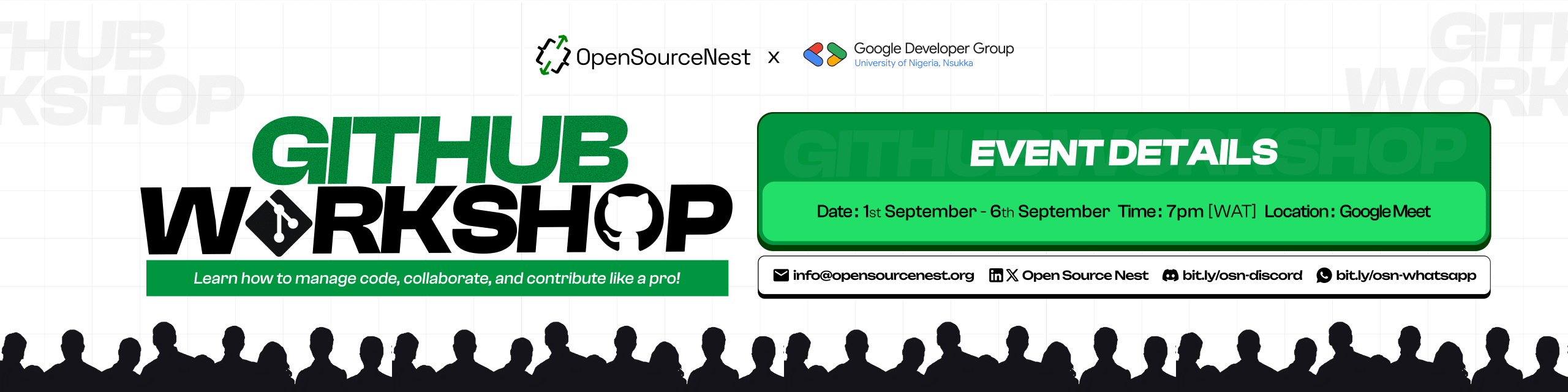 Open Source Nest is on a mission to bring open source to you, and we’re kicking things off with a free, hands-on 6-day GitHub workshop! 🚀