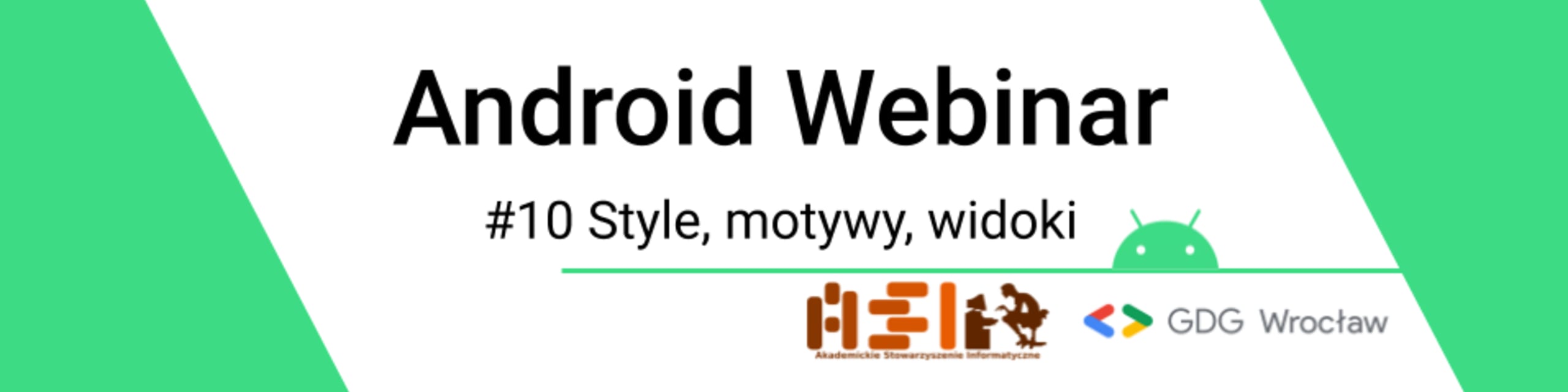GDG Wrocław oraz Akademickie Stowarzyszenie Informatyczne zapraszają serdecznie wszystkich tych, którzy chcieliby poznać świat pisania aplikacji na Androida od zera, od samego początku. Na 10. webinarze przedstawimy style i motywy. Dzięki nim w prosty sposób zbudujemy spójny interfejs graficzny całej aplikacji. Dowiecie się też w jaki sposób można stworzyć własny widok oraz layout.