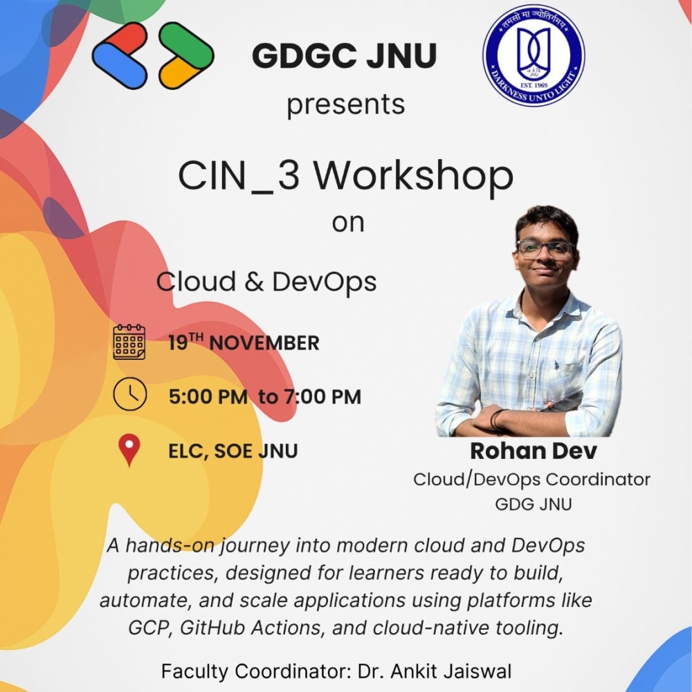 At GDGC-JNU, we are dedicated to fostering a vibrant community of learners and creators who are passionate about leveraging Google's tools and technologies to transform ideas into reality. Our mission is to empower students with practical knowledge and hands-on experience, creating a platform where innovation knows no bounds.