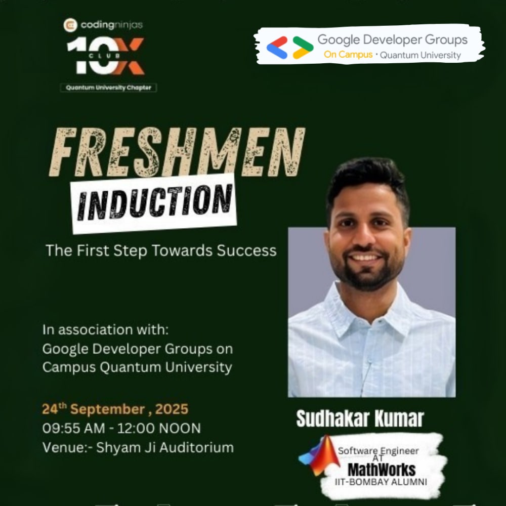 GDG on Campus Quantum University - Roorkee, India is an independent group; our activities and the opinions expressed here should in no way be linked to Google, the corporation. To learn more about the GDG program, visit https://developers.google.com/community